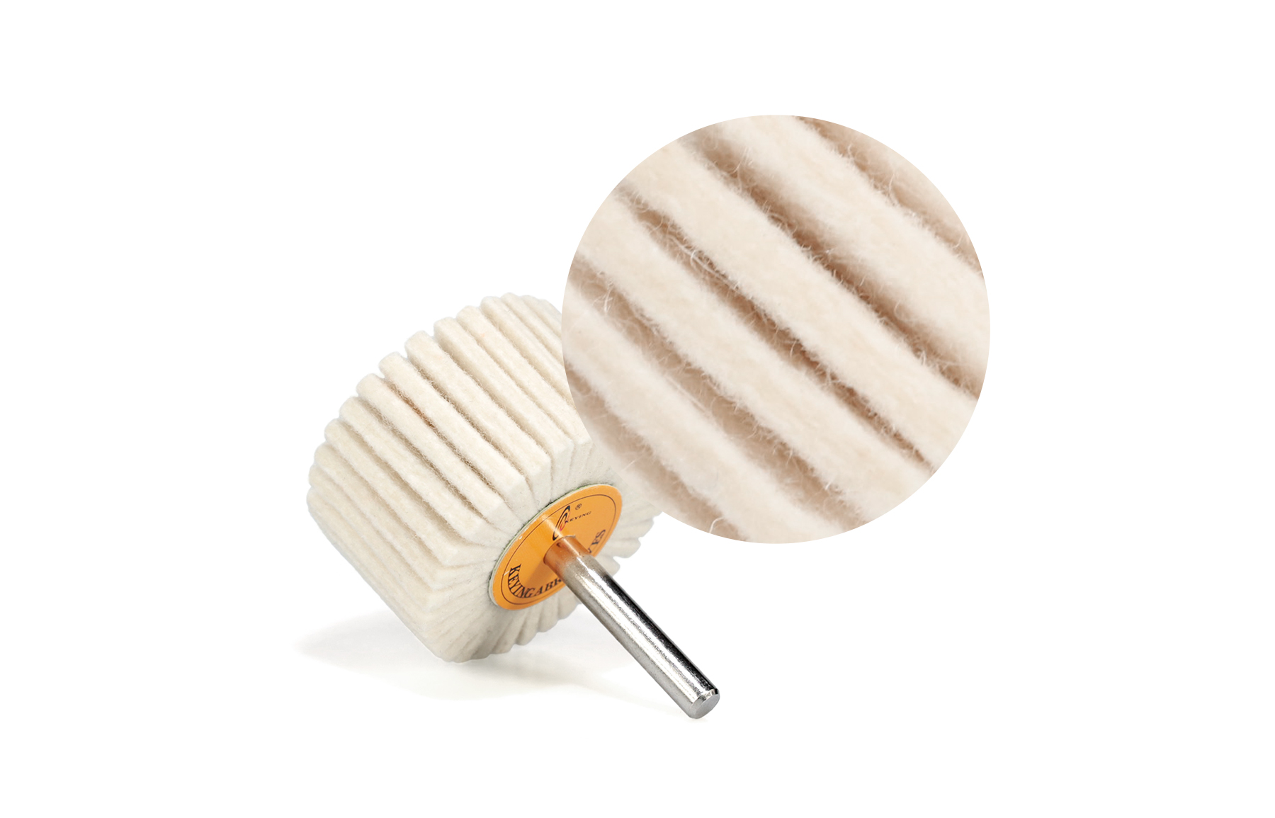 KEYING Wool Felt Wheel is suitable for small and medium size parts, such as round parts and perforated parts. The wheel structure is designed to fit the contours of the working surface and dissipate heat build-up.