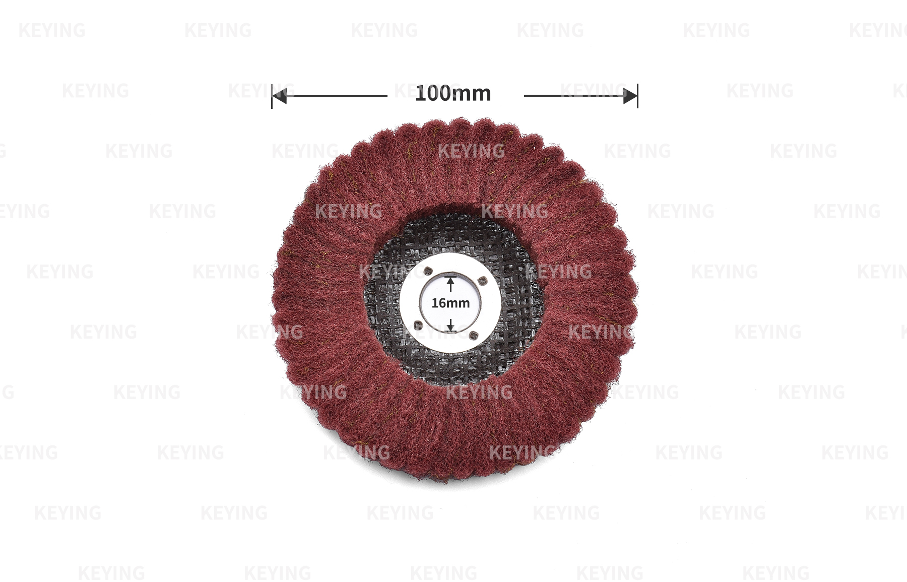 | Brand | KEYING | Origin Country | China | Product Code | NWD + FS + 100*16 + M ↓ ↓ ↓ ↓ lnterleaved Non-woven Flap Disc Shape Size(mm) D * d Grit(#) |